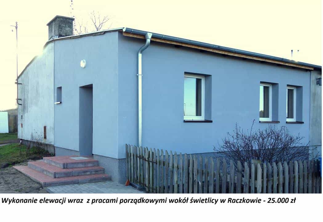 Spore metamorfozy przeszły niektóre świetlice wiejskie. Najbardziej zmieniła się świetlica w Jagniewicach, którą rozbudowano o pomieszczenia cateringu, kotłowni, garderoby, węzeł sanitarny i komunikacyjny. W Raczkowie wykonano elewację oraz uporządkowano teren wokół świetlicy. Zaś świetlica w Brzeźnie zyskała instalację centralnego ogrzewania i przeszła gruntowny remont wewnątrz budynku.