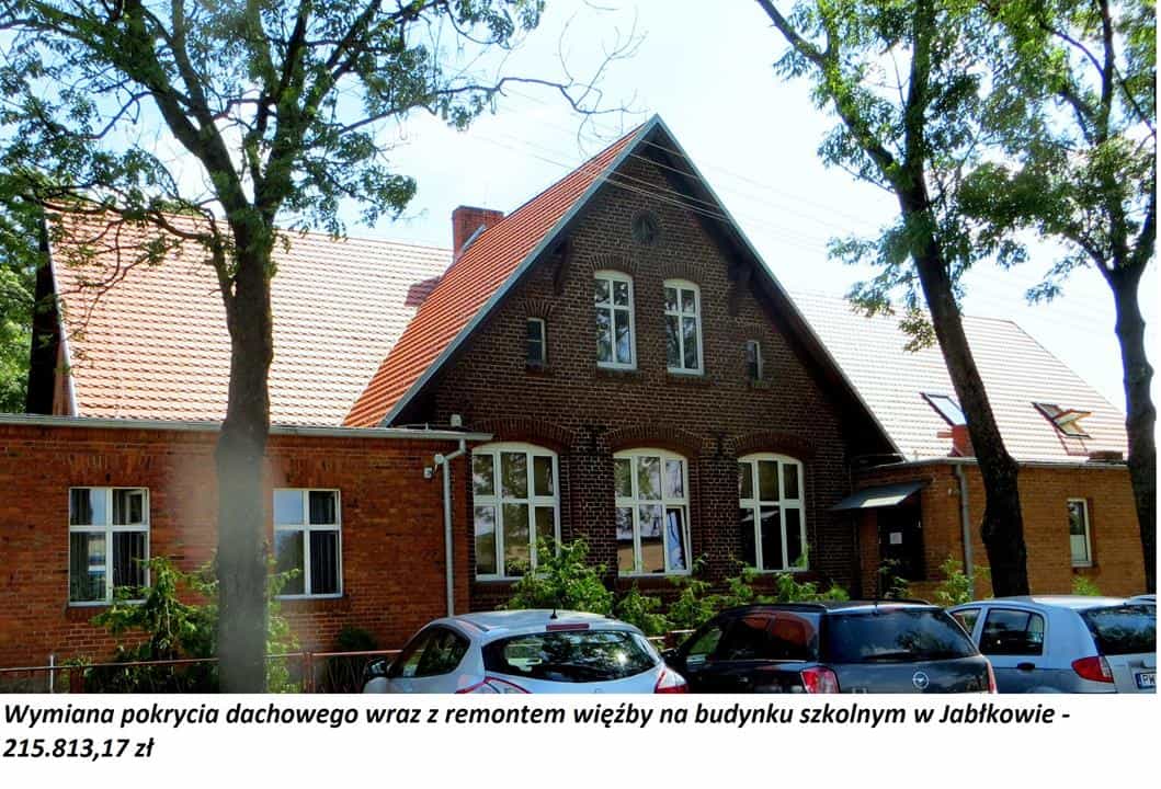 Około 540 tysięcy zostało wydane na modernizacje pokrycia dachowego na budynkach szkolnych w Jabłkowie i w Skokach. Ponadto na budynku przedszkola został zainstalowany monitoring, w szkole podstawowej zamontowano poidełka wody do dzieci, zainstalowano klimatyzację w świetlicy i zakupiono oprogramowanie na dziennik elektroniczny. Zaś w Gimnazjum przeprowadzono kolejny etap remontów. Tym razem założono nowe balustrady schodowe oraz odnowiono ściany w części korytarzy starszego budynku gimnazjum.