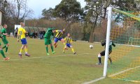 Mecz rozpoczął się dość spokojnie, gospodarze grali bardzo uważnie i kolejny raz bramkarz miejscowych zasygnalizował, że jest w bardzo dobrej dyspozycji. W pierwszych 20. minutach oba zespoły badały się nawzajem. Jednakże Wełna przycisnęła i po stałym fragmencie gry Patryk Sergiel był tam, gdzie powinien i efektownym strzałem głową pokonał bramkarza gości.