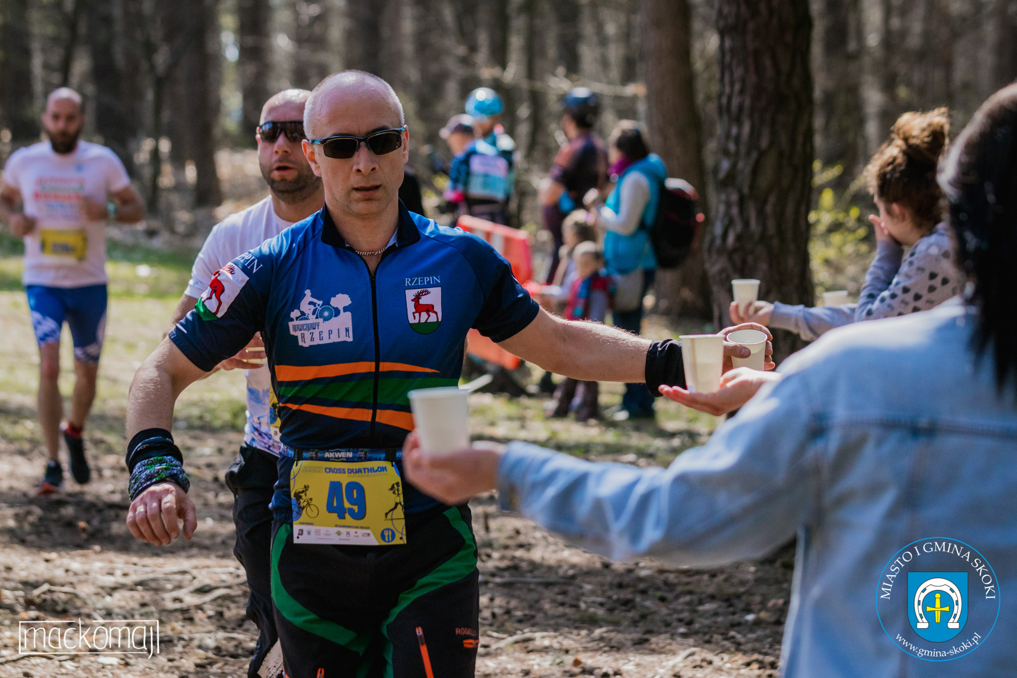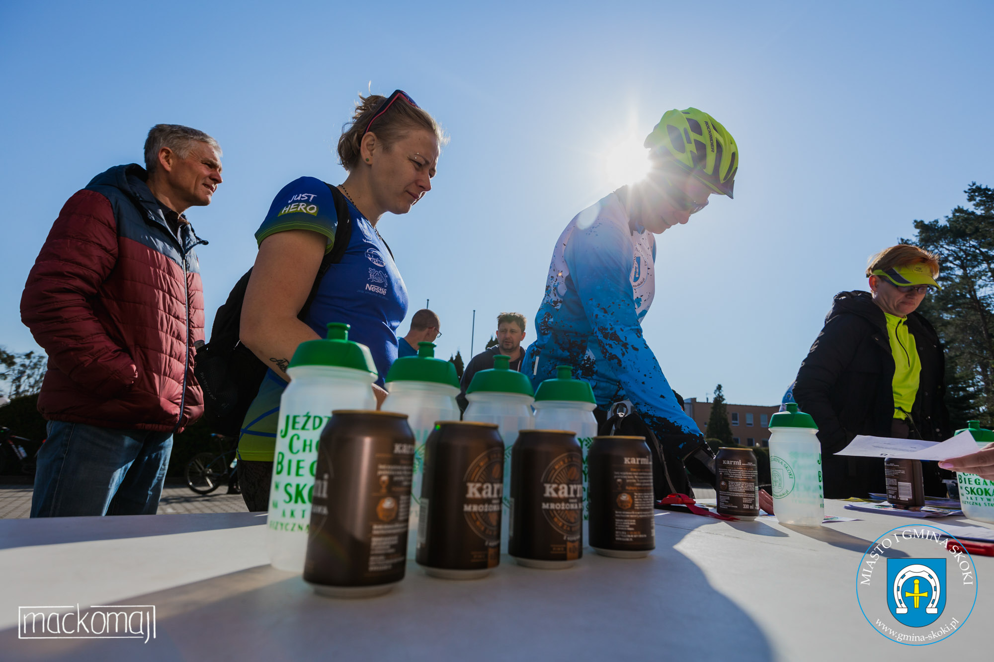 - Rowerzyści z grupy Tour de Sklep Skoki Team z Maciejem Tadeuszem na czele, za oznakowanie trasy i pomoc w jej zabezpieczeniu.