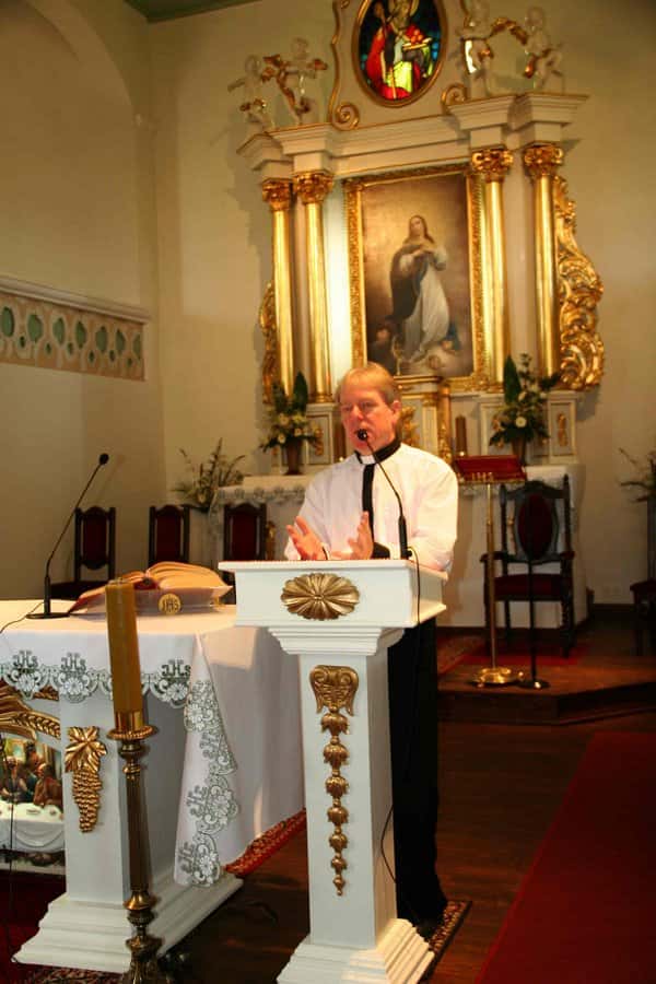 Przez 7 lat był w remoncie, o którym opowiedział ks. Karol Kaczor. To jedyny spośród dwunastu na SKD, który jest kościołem miejskim, ma dwie wieże, trzy nawy, można też powiedzieć o nim, że jest najmniej drewniany, albo jak kto woli, najbardziej murowany. Został gruntownie (choć jeszcze nie do końca) odnowiony. Pod tym względem jego przeciwieństwem jest urokliwy kościół w Jabłkowie. Kolejny raz św. Mikołaj pojawił się na obrazie w Łagiewnikach Kościelnych, a potem w kilku wydaniach w Wierzenicy, gdzie ks. Przemysław Kompf opowiedział o działaniach renowacyjnych i pobłogosławił uczestników wyjazdu. Kolejne kościoły, w Kicinie i Długiej Goślinie łączyła obecność w nich zacheuszków. Ostatni na trasie w Rejowcu to jedyny spośród tej dwunastki będący do II wojny światowej świątynią ewangelicką, a tym samym czynny w jej latach (katolickie były pozamykane i służyły choćby jako magazyny).