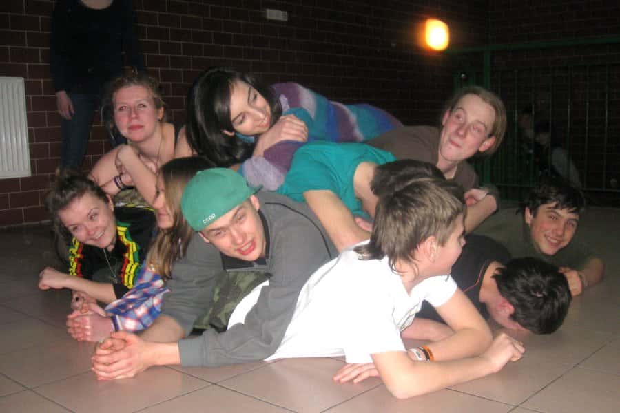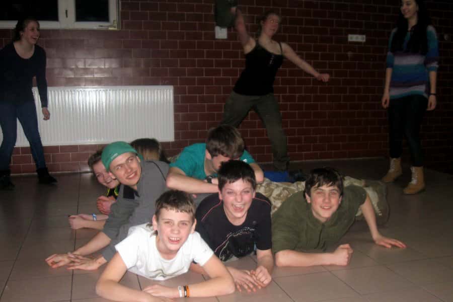 Po pewnym czasie część pieszo, a cześć podstawionym autobusem udała się do Gimnazjum nr 1, gdzie był nasz nocleg. Nie wszyscy wykorzystali ten czas na odpoczynek. Wielu wzięło udział w śpiewankach i grach, które miały na celu jeszcze większą integrację środowiska.