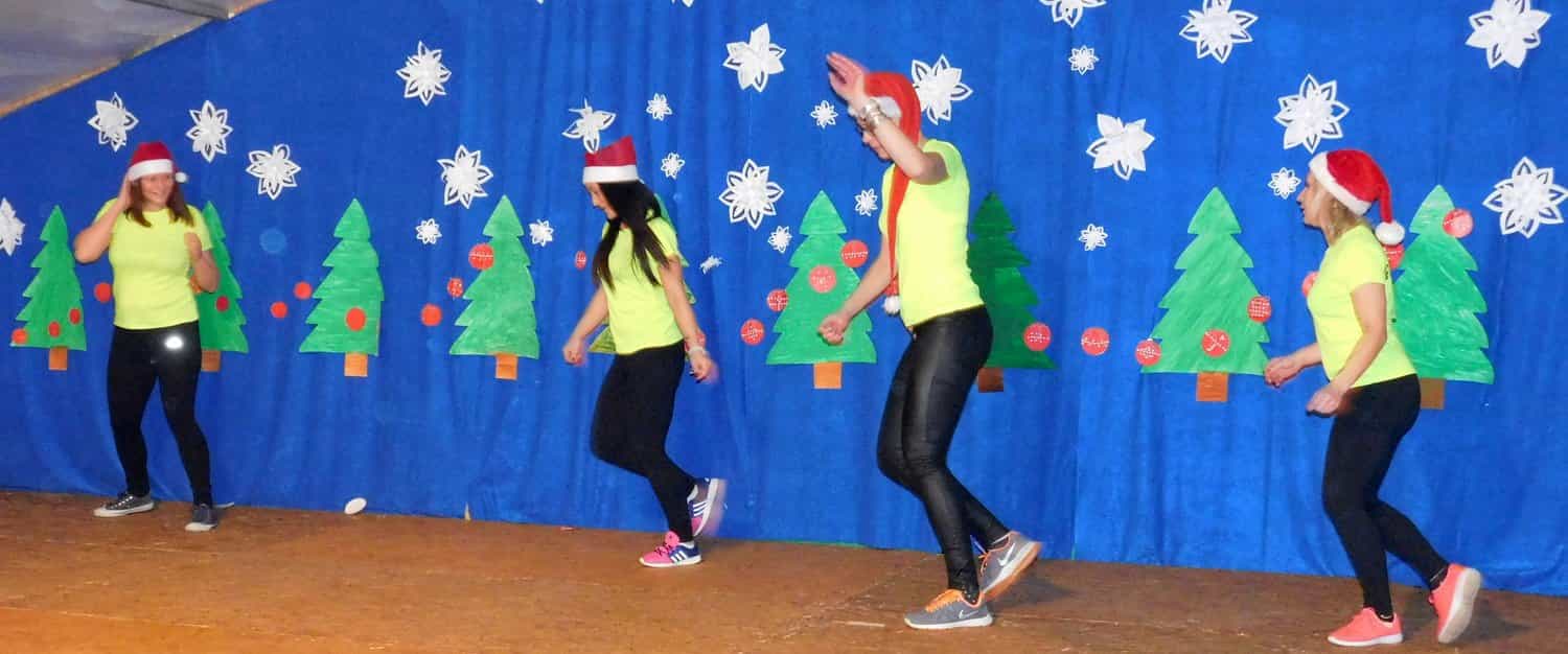 Kiermasz zorganizowany został dla całej społeczności lokalnej Gminy. Chcąc umożliwić społeczności gminnej możliwość udziału w kiermaszu, zorganizowaliśmy autokar, który dowiózł zainteresowanych do Jabłkowa. Spotkanie rozpoczęło się od wystąpienia prezes Stowarzyszenia Edukacyjnego TĘCZA- p. Sławomiry Kędziory, która podziękowała za przybycie i przygotowanie kiermaszu, życząc wszystkim wspaniałej zabawy, w pięknym przedświątecznym klimacie. Imprezę rozpoczął występ uczniów naszej szkoły, którzy w przedstawieniu muzyczno – tanecznym zabrali nas w świat wartości. Po występie młodych artystów nadszedł czas na obejrzenie świątecznych wytworów. Przy kawie i ciasteczku można było nabyć świąteczne akcenty, które ozdobią nasze domy w czasie świąt. Kiermasz świąteczny był również możliwością do zaprezentowania się warsztatu kulturalno – artystycznego i edukacji wizerunkowej. Wyłoniona z warsztatu grupa wokalna prowadzona przez trenera Pana Piotra Wiśniewskiego śpiewając kolędy i pastorałki wprowadziła nas w zaczarowany, piękny nastrój świąteczny. Niespodzianką był występ grupy tanecznej z edukacji wizerunkowej pod kierunkiem Pani Joanny Tomczak, których taniec przy świątecznych utworach dopełniły magii świąt.