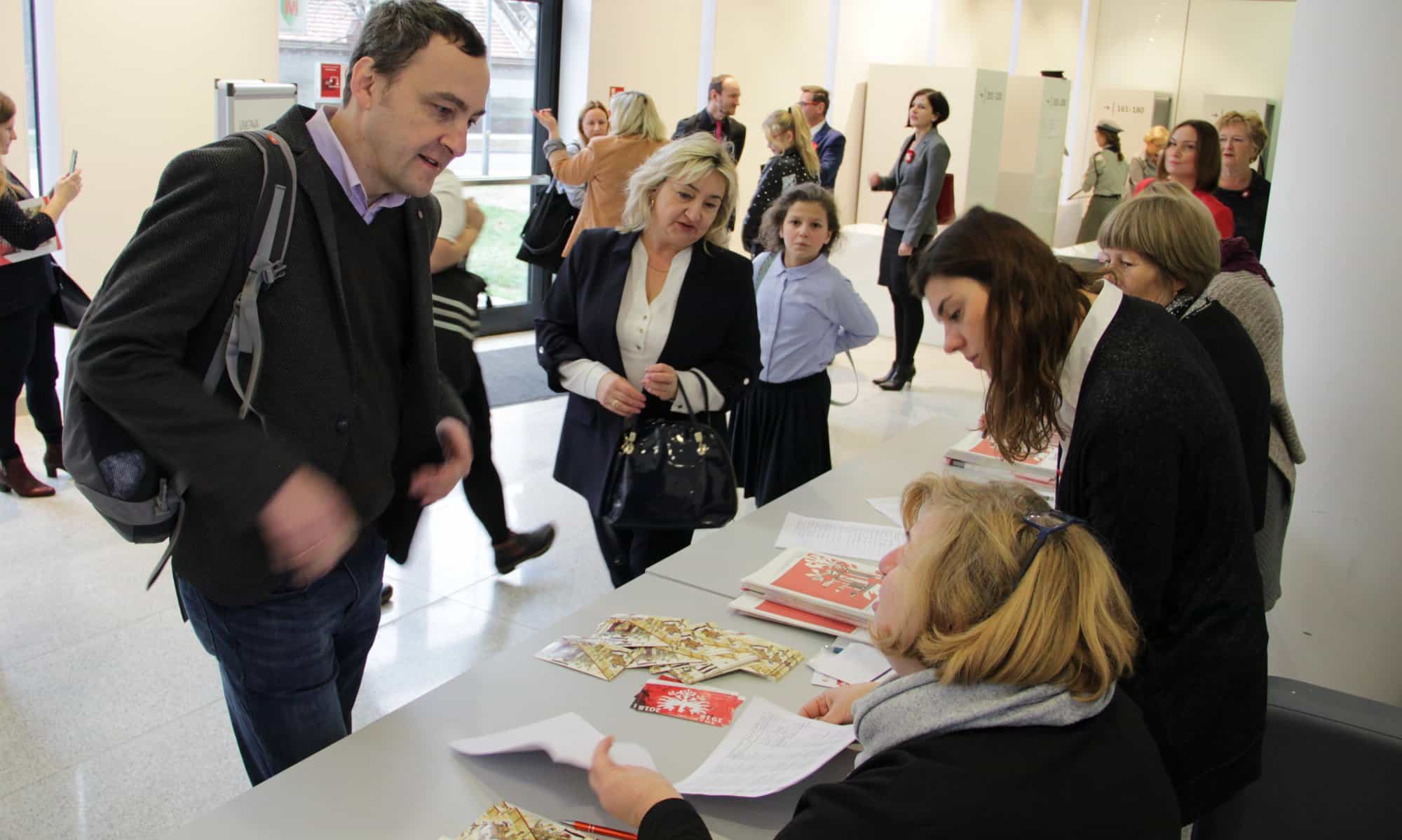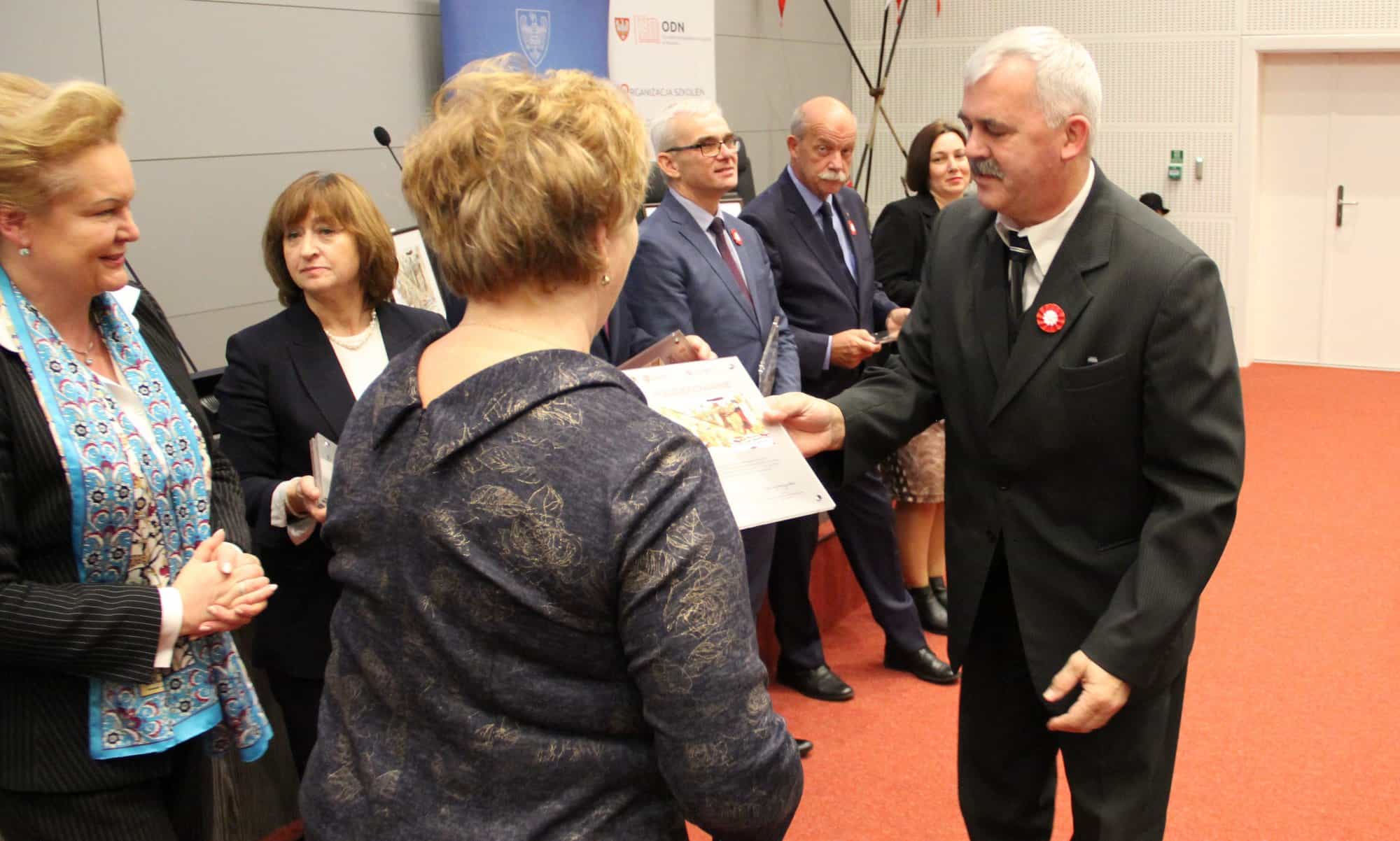 Na uroczystość zaproszono przedstawicieli szkół, które były (i są) szczególnie zaangażowane w działania rocznicowe, które otrzymały stosowne certyfikaty. Takowe okolicznościowe podziękowanie odebrał pan Wiesław Sierzchuła obecnie wicedyrektor Szkoły Podstawowej w Skokach.