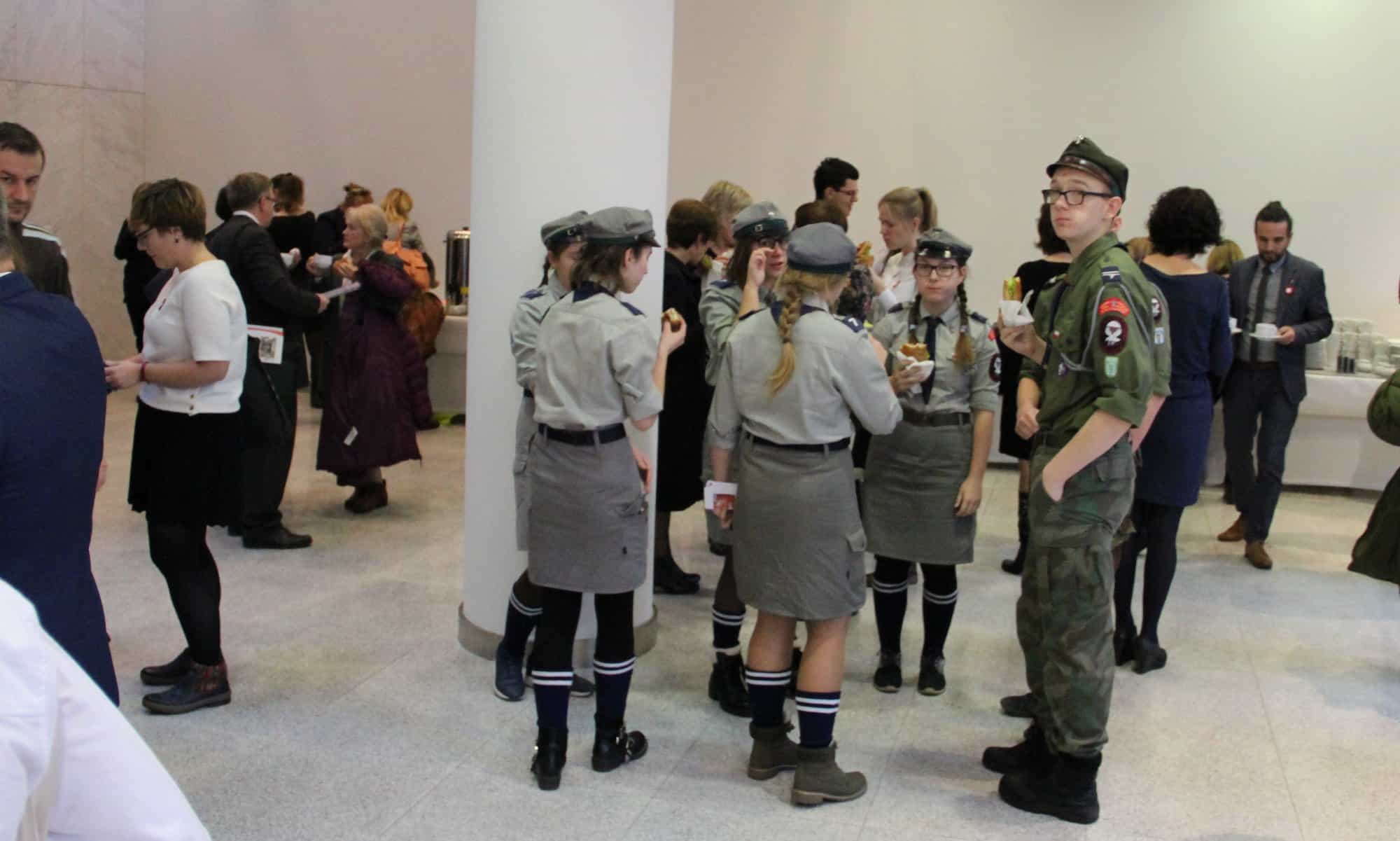 Wśród gości byli także skoccy harcerze z 7 Skockiej Drużyny Harcerskiej „HYCE” To właśnie oni wprowadzili na salę kombatancki sztandar, przypinali przychodzącym powstańcze rozetki czy zajmowali się szatnią. Kolorytu uroczystościom dodawała Grupa Rekonstrukcyjna z Ochotniczego Reprezentacyjnego Oddziału Ułanów Miasta Poznania ubrani w stroje powstańców, tworzący na scenie historyczną scenografię.