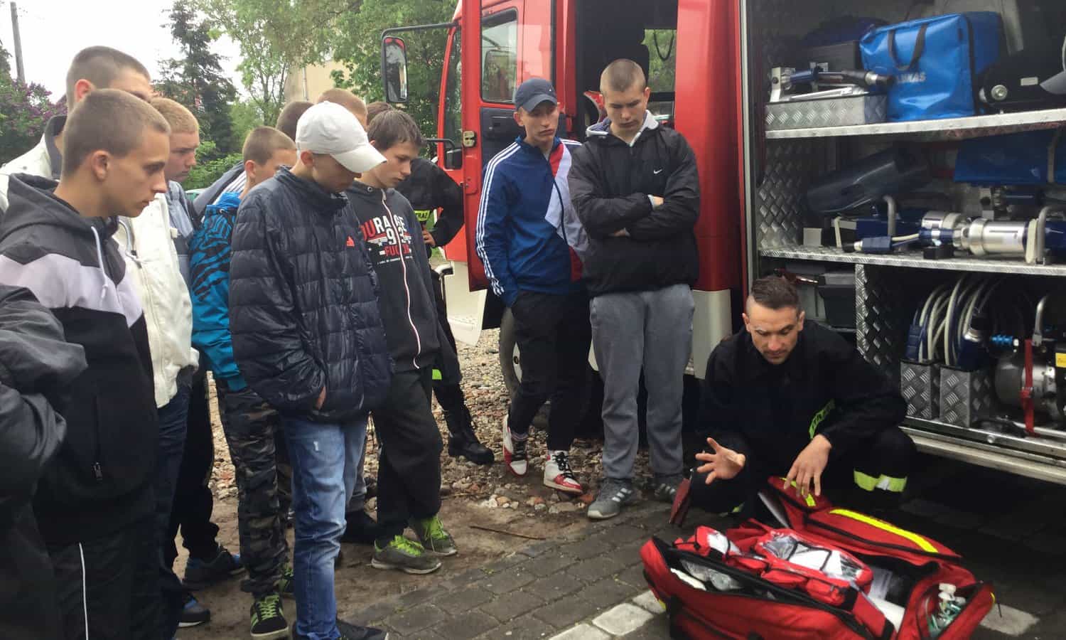We wtorkowe popołudnie 18 maja gościliśmy w naszej jednostce grupę wychowanków z Młodzieżowego Ośrodka Wychowawczego w Antoniewie. Wizyta ta miała na celu przybliżenie uczestnikom spotkania specyfiki pracy strażaka oraz zapoznanie się z wyposażeniem samochodów ratowniczych. Podczas tego typu spotkań przekazywana jest również wiedza z zakresu działań ratowniczo-gaśniczych, która ukazuje jak należy się zachować w momentach, gdzie występuje zagrożenie dla życia, zdrowie bądź mienia ludzkiego. Spotkanie przebiegło w atmosferze rozmów i pytań zadawanych przez zebranych, którzy wykazywali duże zainteresowanie i aktywność w dyskusji.