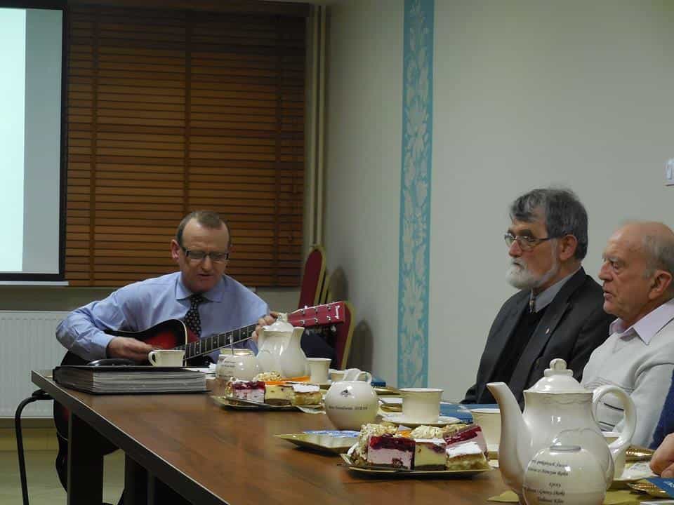 Podczas spotkania przy kawie i słodkim co nieco śpiewano też kolędy proponowane przez Piotra Babrakowskiego grającego na gitarze.