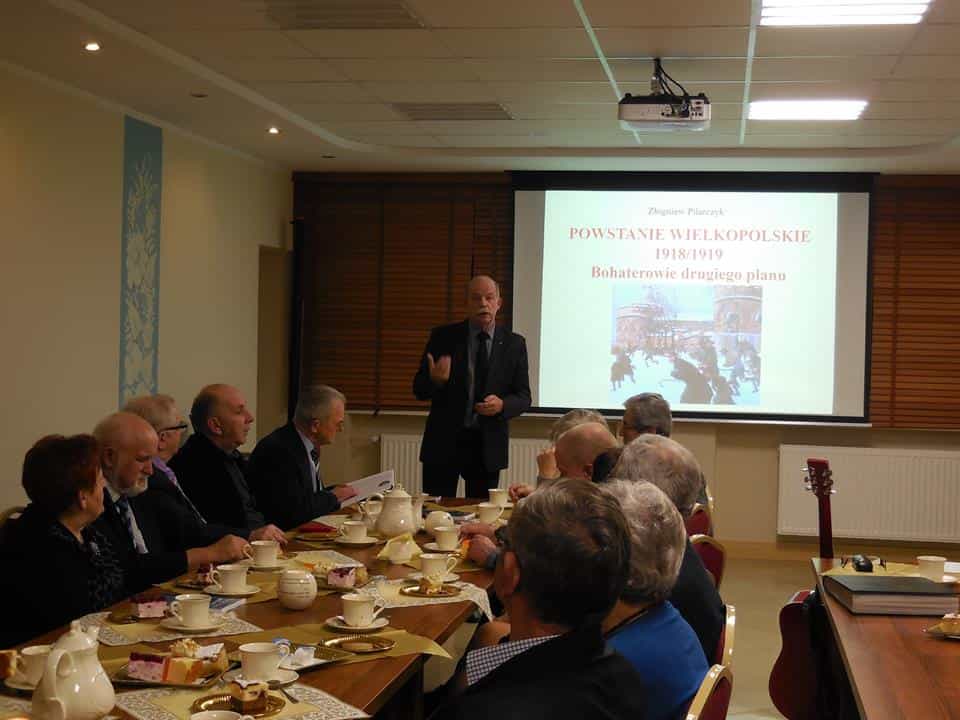 Gość specjalny, prof. Zbigniew Pilarczyk z Uniwersytetu Adama Mickiewicza w Poznaniu przedstawił zebranym wykład pt. Powstanie Wielkopolskie 1918/1919. Bohaterowie drugiego planu. Spore zdziwienie słuchaczy wzbudzały różne ciekawostki, a jedną z nich była informacja, że w powstaniu wzięli dział nie tylko Polacy, nie tylko Wielkopolanie, ale również Niemcy, a nawet Afrykanin, Chińczyk i Włoch, których podobizny można było zobaczyć na fotografiach. Nie obyło się też bez wzruszenia, a wywołał je szczególnie slajd przedstawiający medal przyznawany matkom poległych powstańców. Wykład sprowokował do zadawania dodatkowych pytań, na które profesor chętnie odpowiadał.