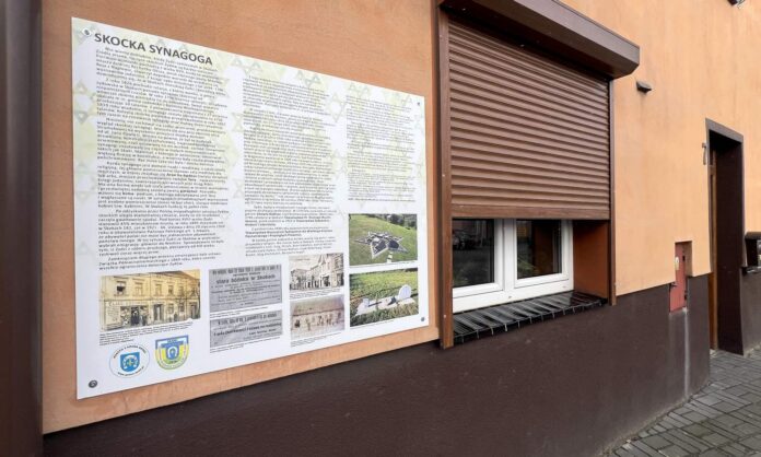 Pod koniec grudnia 2023 roku na fasadzie budynku przy ul. Jana Pawła II 7 za zgodą właścicieli, państwa Burzyńskich zawisła tablica upamiętniająca istniejąca kiedyś w Skokach żydowską synagogę.