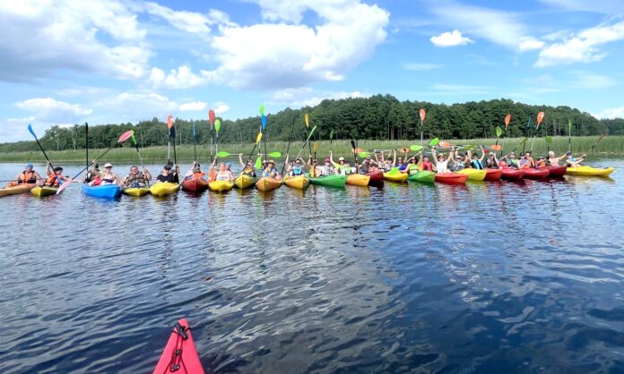 45 kajakarzy + pies wzięło udział w 1 spływie kajakowym po potrzanowskich jeziorach, który odbył się w słoneczną i ciepłą niedzielę 25 czerwca.