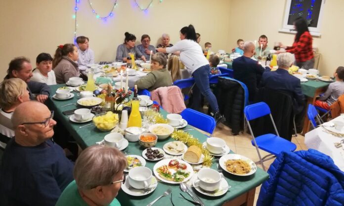 10 grudnia rodziny zasiadły przy wspólnym obficie zastawionym i pięknie ubranym stole, przy którym nie zabrakło opłatka oraz wielu wigilijnych potraw: tradycyjnego karpia, barszczu z uszkami, kapusty z grzybami, śledzia w śmietanie i wielu innych pyszności, które przygotowały wspólnie mieszkanki wsi wraz z sołtysem. Podczas wspólnego świętowania przy świecach i pięknie ubranej choince nie zabrakło również kolęd.