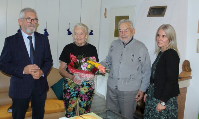 – Jesteśmy niezwykle zaszczyceni wizytą pana burmistrza i pani kierownik. To bardzo miłe z Waszej strony, że zechcieliście nas odwiedzić i wspólnie z nami świętować nasze „diamentowe gody” – powiedzieli małżonkowie, zapraszając na filiżankę kawy i przepyszny tort. A pani Janina przytuliła piękny i okazały bukiet kwiatów, który otrzymała od burmistrza Tadeusz Kłosa wraz z okolicznościowymi upominkami.