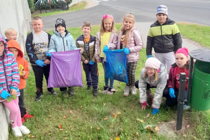 galeria zdjęć przedstawia dzieci podczas akcji sprzątania świata: