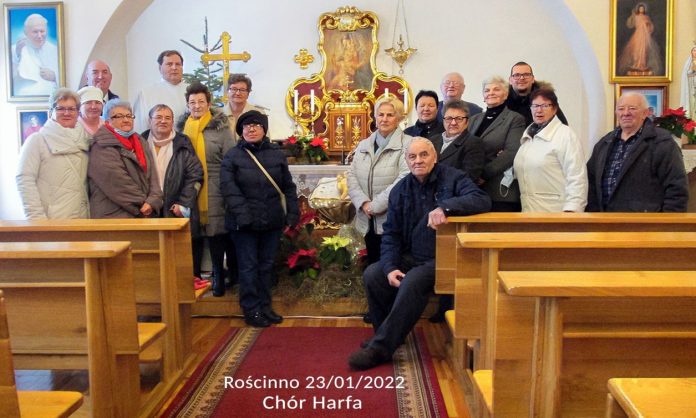 „Niebo ziemi, niebu ziemia, wszyscy wszystkim ślą życzenia” – styczniowe kolędowanie Harfy w Rościnnie.