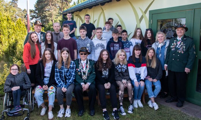 Z okazji tegorocznego Dnia Dziecka, w przeddzień Święta – 31 maja, uczniowie klasy 8 b Szkoły Podstawowej w Skokach wraz z wychowawczynią Wioletą Grzegorzewską i opiekunem Januszem Bojarskim przybyli na strzelnicą bracką Kurkowego Bractwa Strzeleckiego w Skokach. Tutaj przybyłych w imieniu Króla Zielonoświątkowego AD 2020 Janusza Stoińskiego powitał strzelmistrz Stanisław Grzegorzewski w asyście podchorążego Tadeusza Jerzaka.