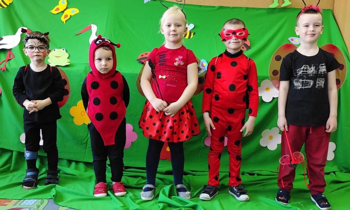 Wiosna przyszła i rozgościła się u nas na dobre, zaprosiła nasze przedszkolaki na „Bal Tęczowej Łąki”. Wszystkie dzieci przeniosły się z przedszkola na „łąkę”. Spotkały się na niej żaby, bociany, motyle, biedronki, pszczółki, pająki, koniki polne, zające, kret, jeż a także ślimak. Wszystkie zwierzątka zgodnie bawiły się przy łąkowych przebojach. Nie zabrakło również smakowitych przekąsek takich jak galaretki i lody, które umiliły przerwy w wyśmienitej zabawie. To wydarzenie dostarczyło dzieciom wiele radości, co było głównym celem tego spotkania.