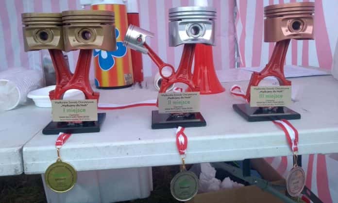 Po licytacji nastąpił moment ogłoszenia wyników i wręczenia zwycięzcom okazałych statuetek w kształcie tłoków silnikowych. Teraz okazało się też, że na 30 zawodników ryby złowiło 27, więc rybki tego dnia dopisały.