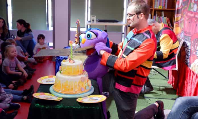 Podczas wizyty w Bibliotece Publicznej MiG w Skokach dzieci z okolicznych przedszkoli i szkół miały okazję do nie lada świętowania… był tort, były śpiewy i tylko jeden malutki problem… prezent! Sytuacja jednak szybko została opanowana za sprawą zapasów z muzycznej spiżarni, które to utalentowani artyści zamienili w prawdziwie muzyczną ucztę. MS