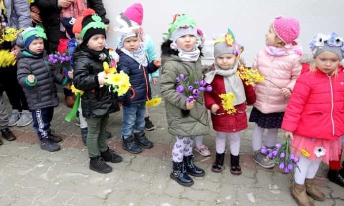 Skoki oraz bukiety kwiatów, którymi obdarowane zostały „Jubilatki”.