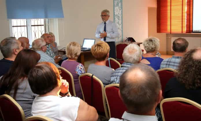 Zgromadzonych przed sceną, ze szczególnym ukłonem dla rolników powitał ze sceny Tadeusz Kłos Burmistrz Miasta i Gminy Skoki.